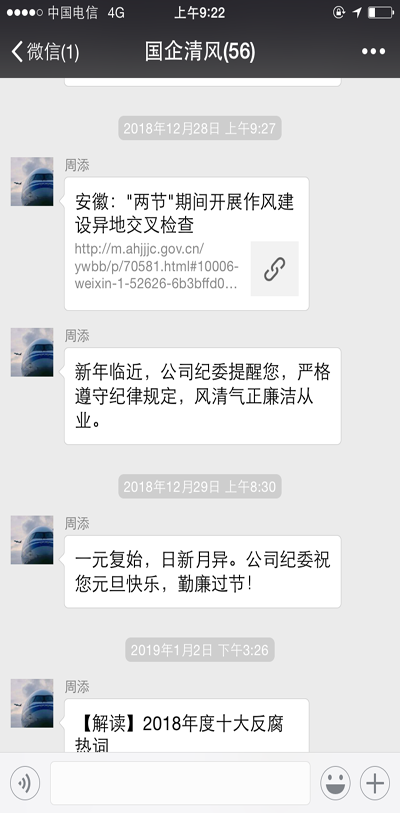 ▲通過(guò)微信、短信平臺(tái)發(fā)送元旦春節(jié)廉政短信,送出新年祝福的同時(shí)也送出了廉政提醒